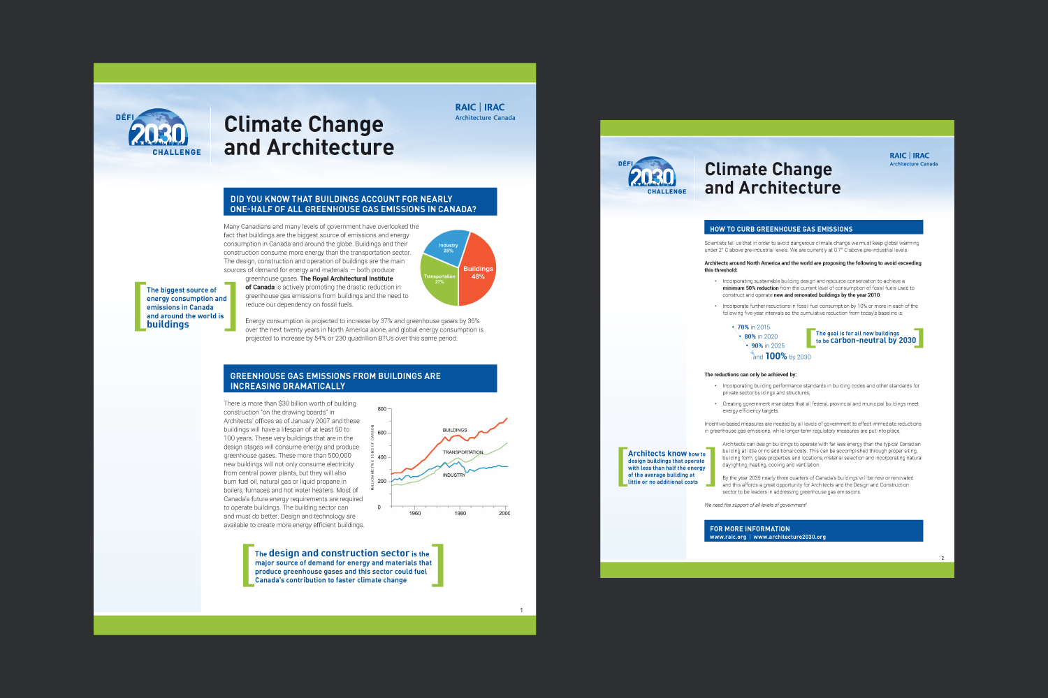 Factsheet informing the construction industry about the importance of buildings in relation to GHG emissions and encouraging the adoption of an initiative for reducing GHG emissions through responsible building design / Distributed to attendees at social events