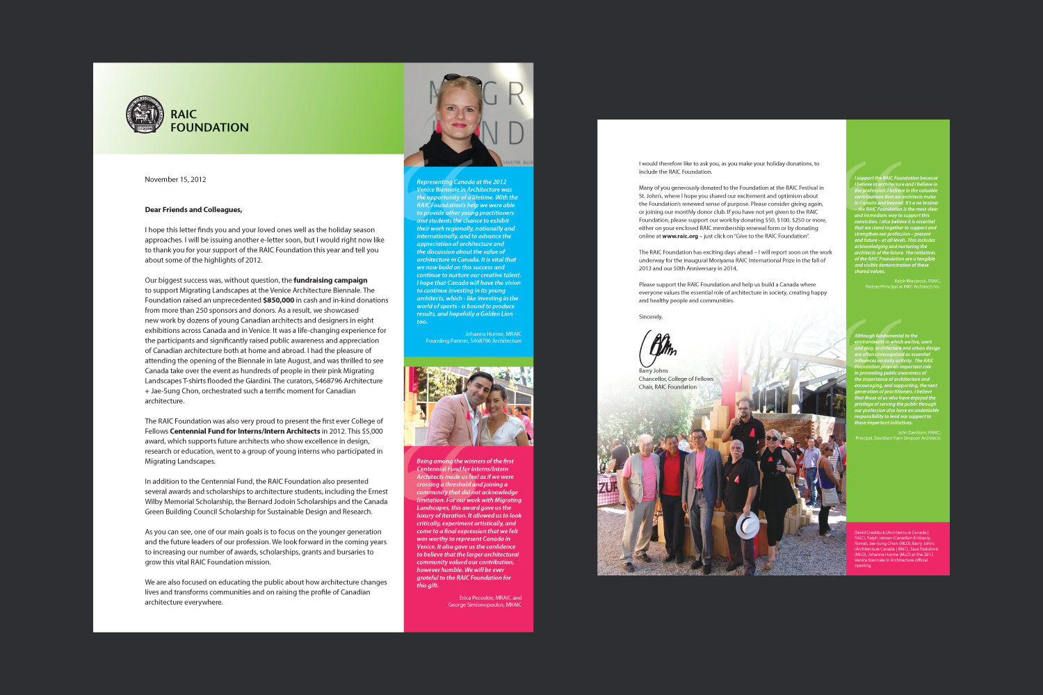 Letter promoting a fundraising campaign, encouraging donations to the Royal Architectural Institute of Canada Foundation / Distributed by mail to RAIC members and to attendees at social events