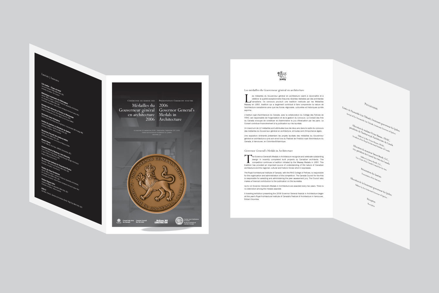 Ceremony program booklet for the presentation of the Governor General's Medals in Architecture, 2006 edition