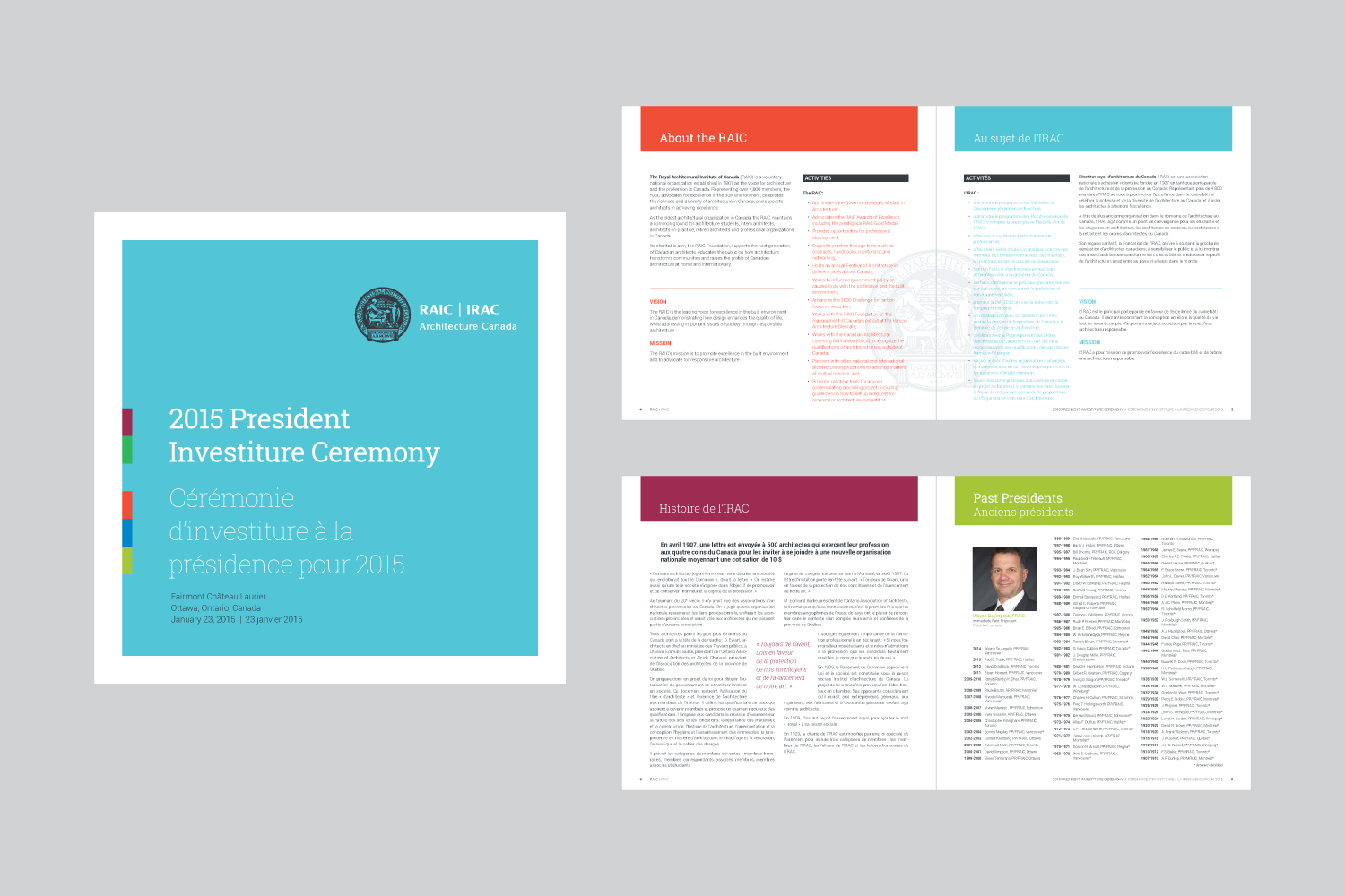 Booklet for the Royal Architectural Institute of Canada's president investiture ceremony / 24 pages / Design and layout