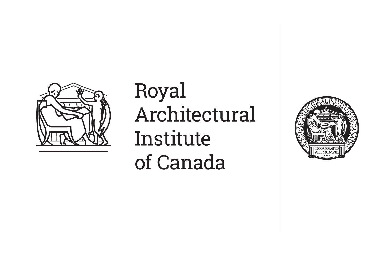Logo redesign proposal for the Royal Architectural Institute of Canada (at left) / A simplified, stylized version of the current, intricate seal (at right)