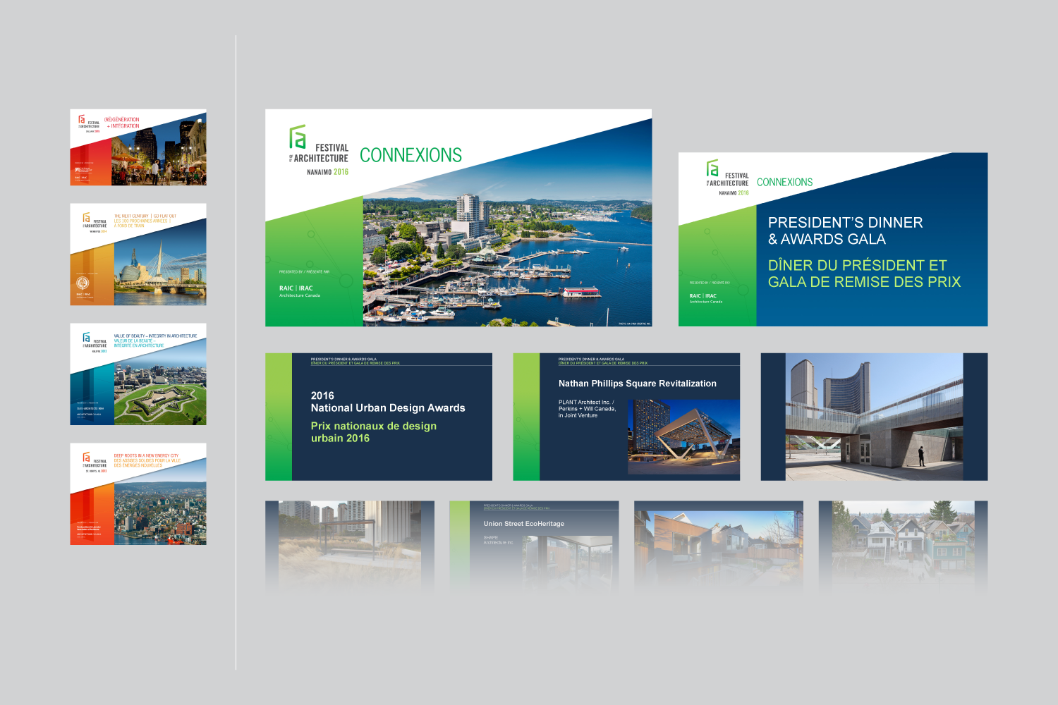 PowerPoint template for the Festival of Architecture, 2012 to 2016 editions / Used for various presentations at each edition of the Royal Architectural Institute of Canada's annual conference