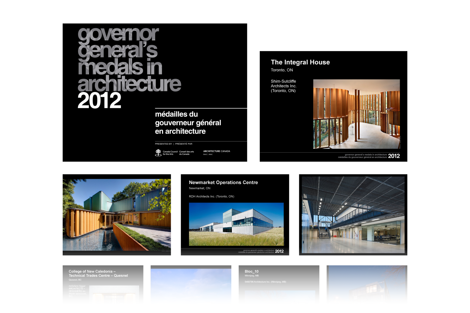 PowerPoint presentation for recepients of the Governor General's Medals in Architecture, 2010 to 2014 editions (showing 2012) / Presented during the award ceremonies at Rideau Hall