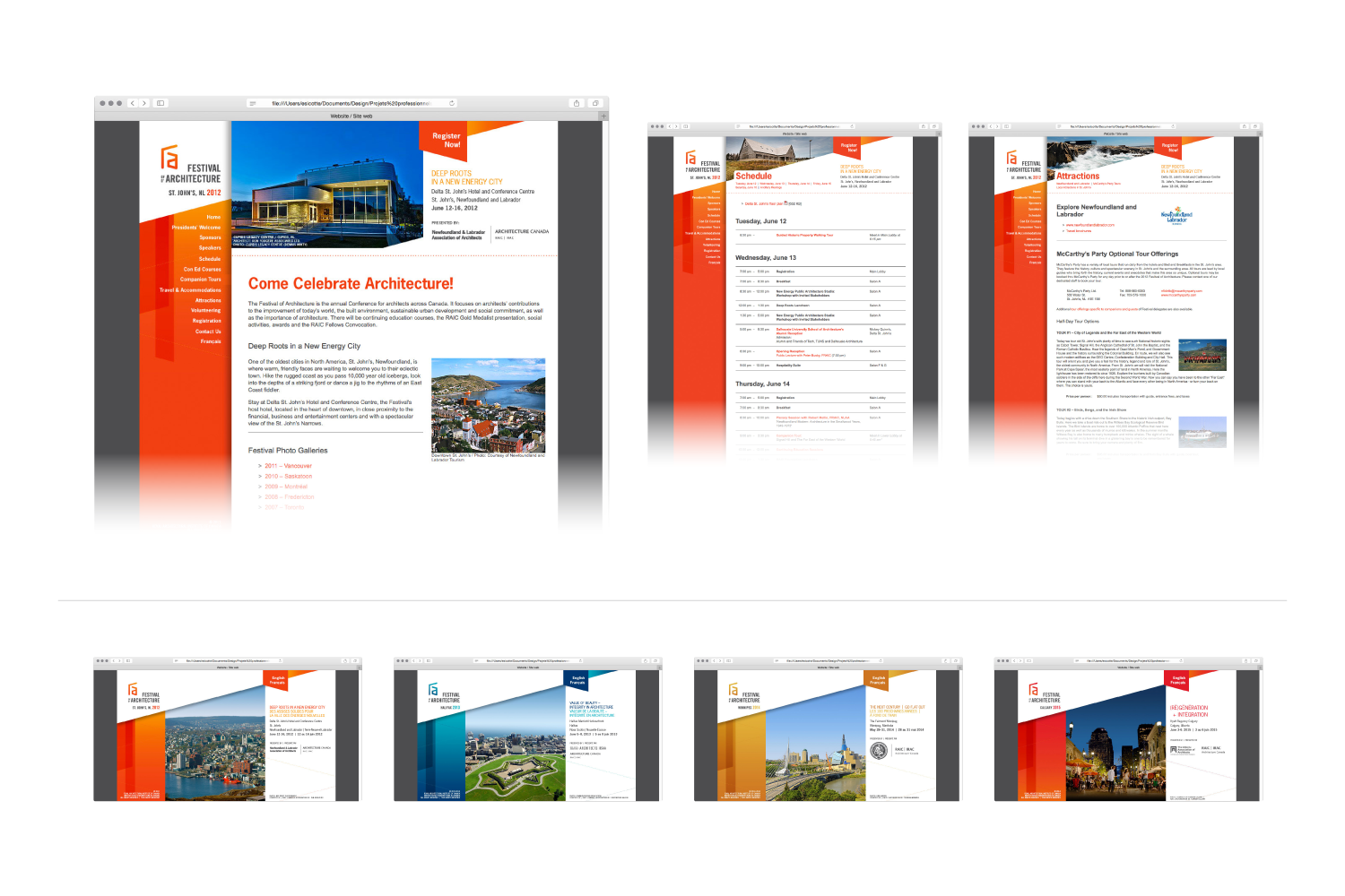 Website for the Festival of Architecture, 2012 to 2015 editions / Promoting the Royal Architectural Institute of Canada's annual conference and providing information to attendees / Design, HTML+CSS programming, layout / See the 2015 website